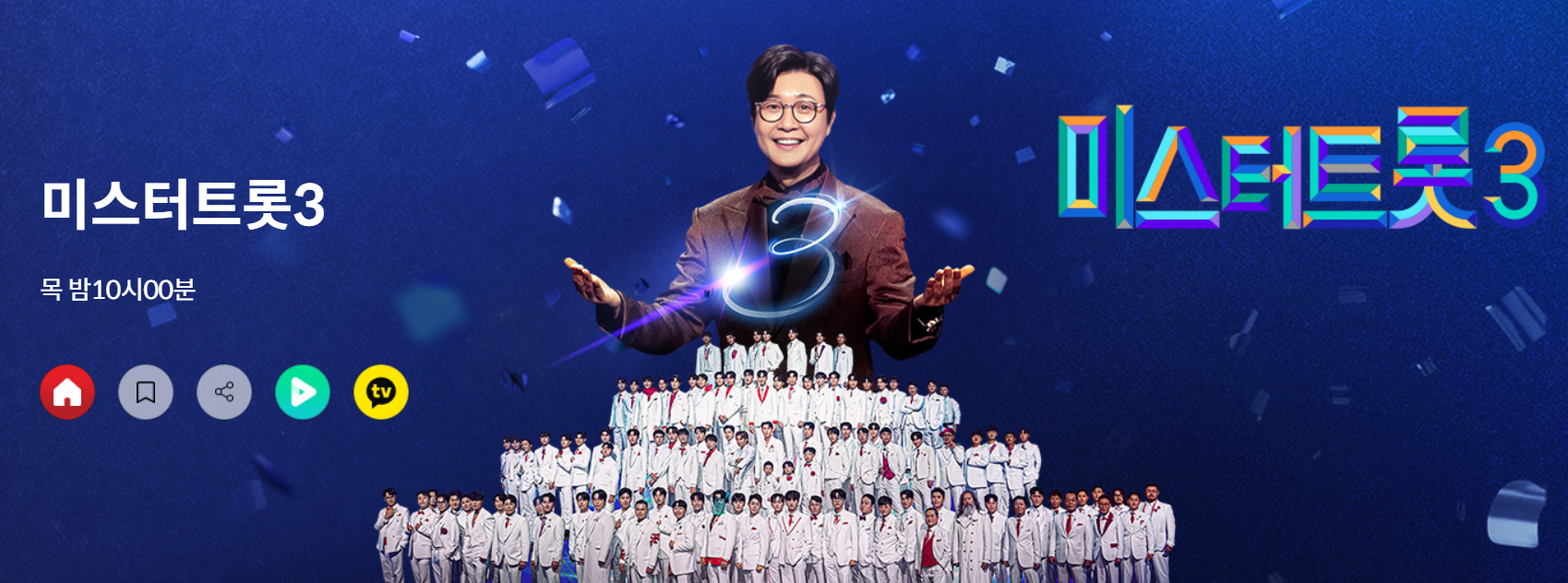미스터트롯3는 대한민국 트로트 열풍을 이끌어온 TV CHOSUN의 트로트 경연 프로그램입니다. 2024년 12월 19일부터 2025년 3월 13일까지 매주 목요일 밤 10시에 방송될 예정이며, 총 12부작으로 구성됩니다.