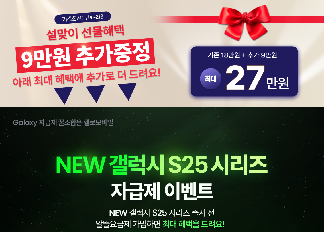 S25를 자급제 구매하시고 요금제를 아주 저렴한 헬로모바일 유심요금제를 사용하세요! 바로 들어가시면 지금 최고 해택까지 지원됩니다!